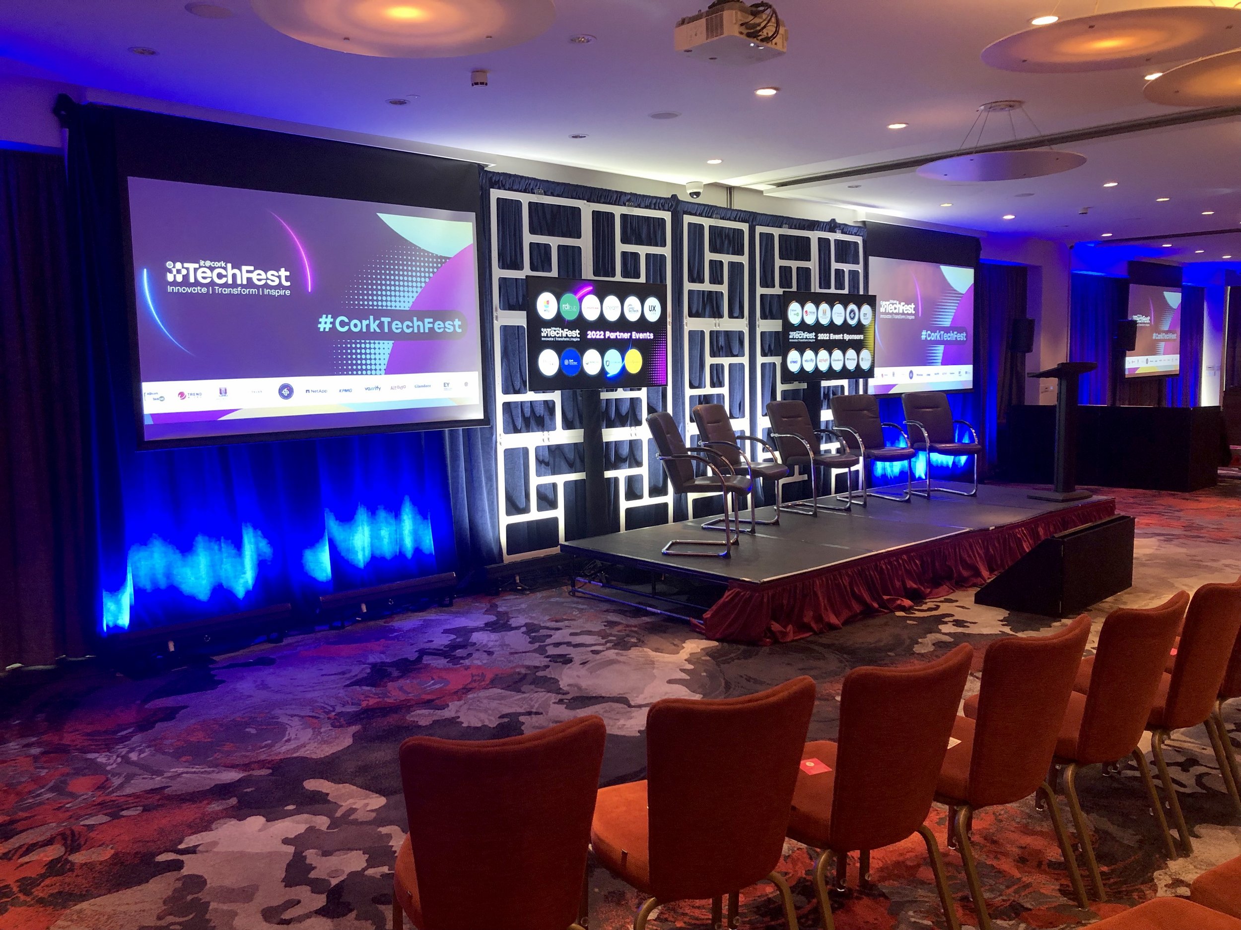 TechFest, it@cork’s annual flagship tech conference, today returned in person for the first time at the Clayton Hotel Cork, with the need for technology to drive sustainability and social good highlighted by speakers. Attended by over 250 people, the sell-out event featured keynote speakers from across a range of sectors and partner events running across the southwest region throughout this week. AVC were onsite to ensure the smooth running of this great event.